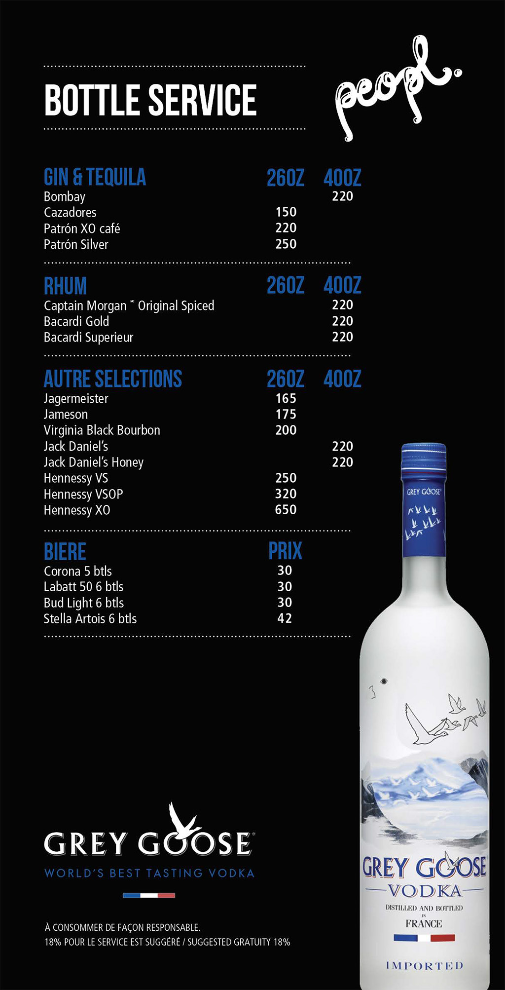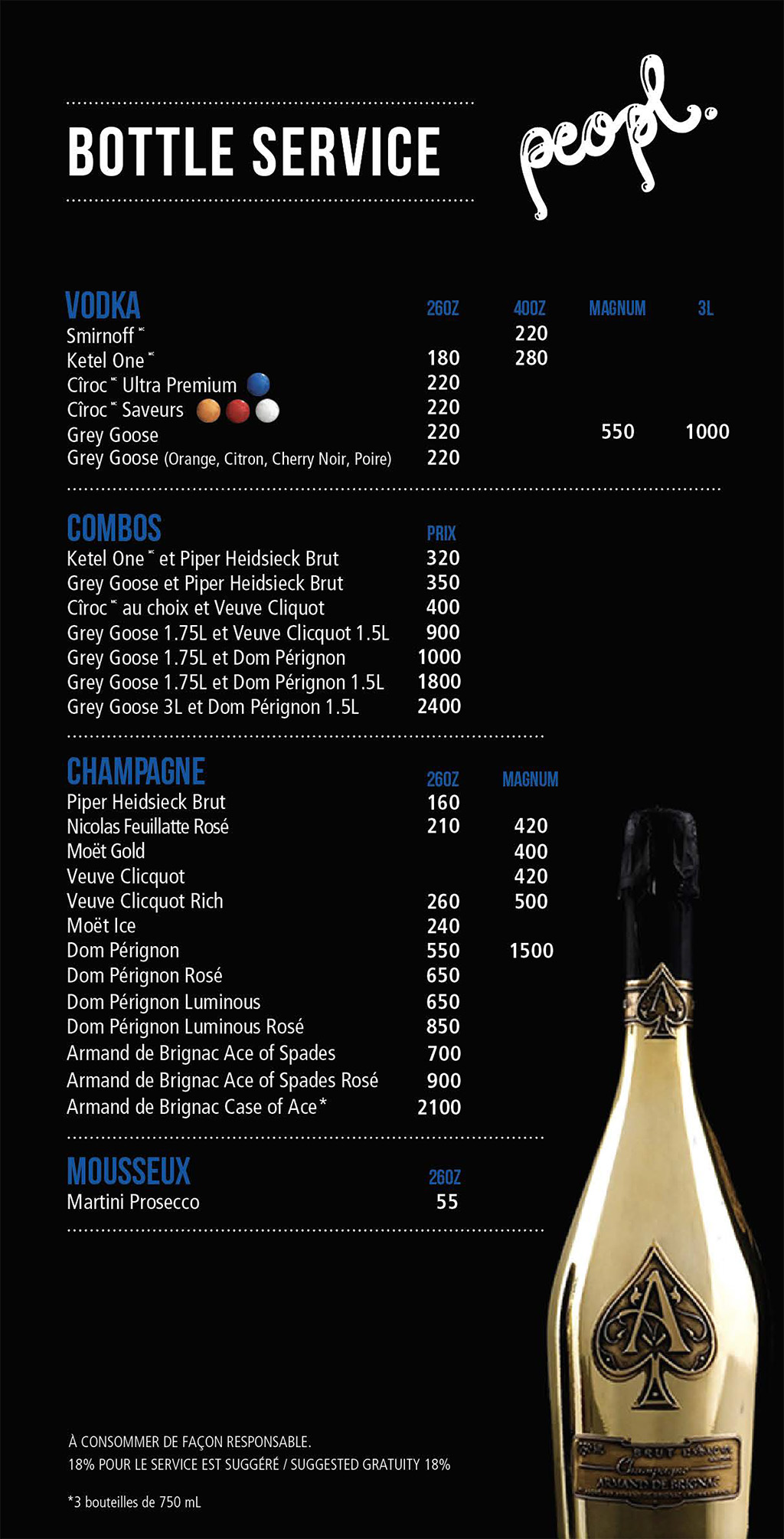 Bottle menu